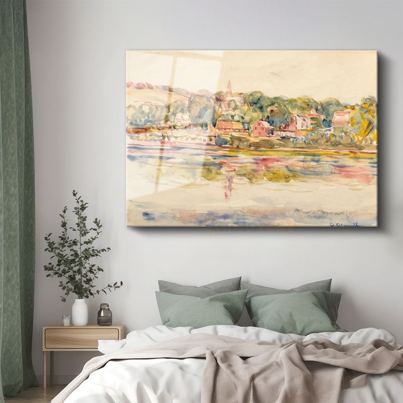 Paul Cézanne - Nehir Kıyısı Manzarası Cam Tablo