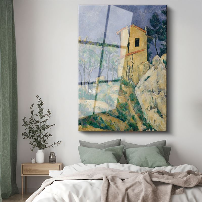 Paul Cézanne - Sarı Ev ve Kayalıklar Cam Tablo