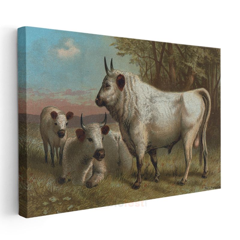 Paul L. Dreux - Beyaz Boğalar Kanvas Tablo