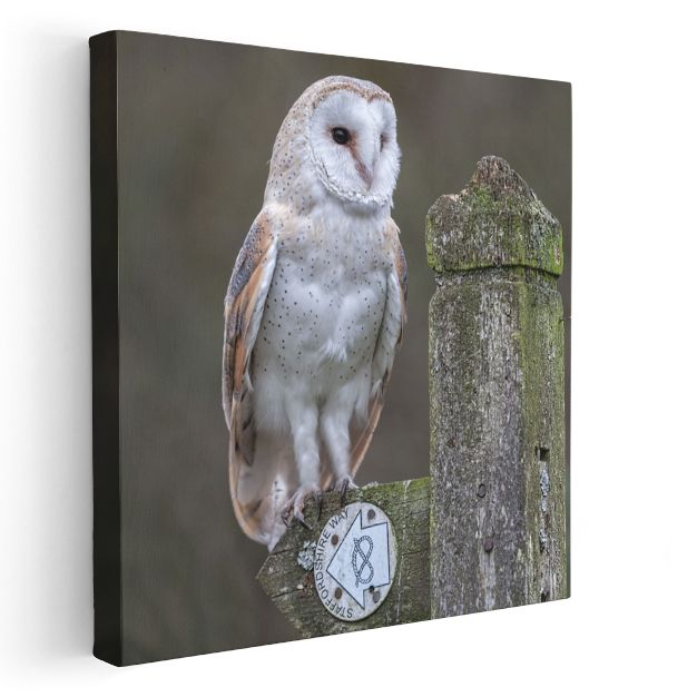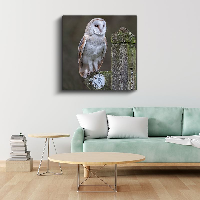 Peçeli Baykuş - Ahşap Çitte Bilge Bakışlar Kanvas Tablo