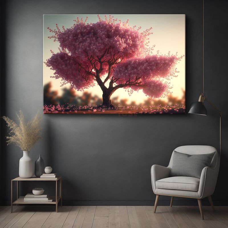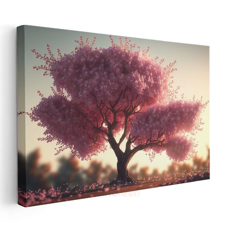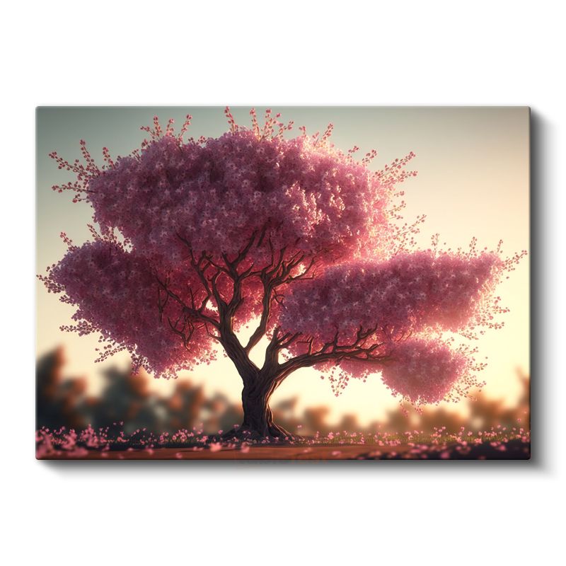 Pembe Ağaç - Gün Batımında Büyüleyici Doğa Kanvas Tablo