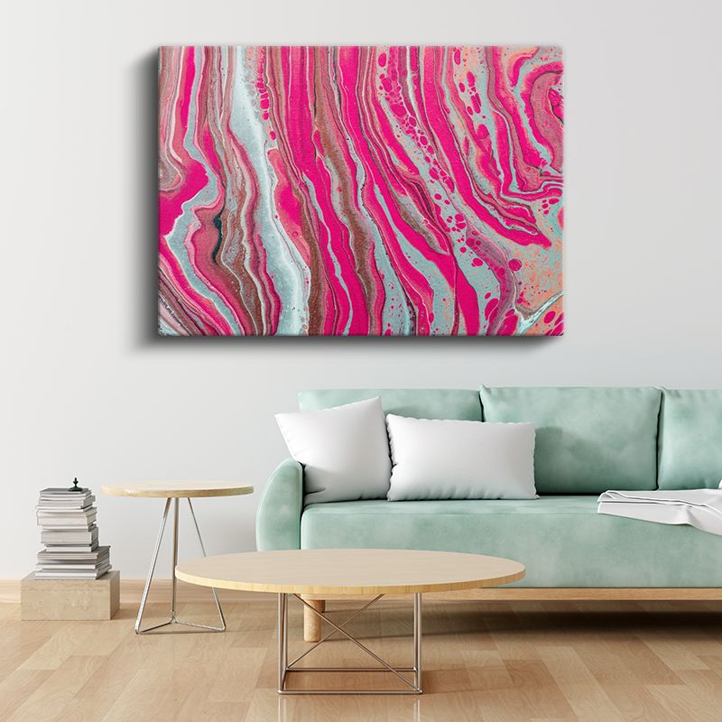 Pembe Akış - Dikey Çizgili Soyut Kompozisyon Kanvas Tablo