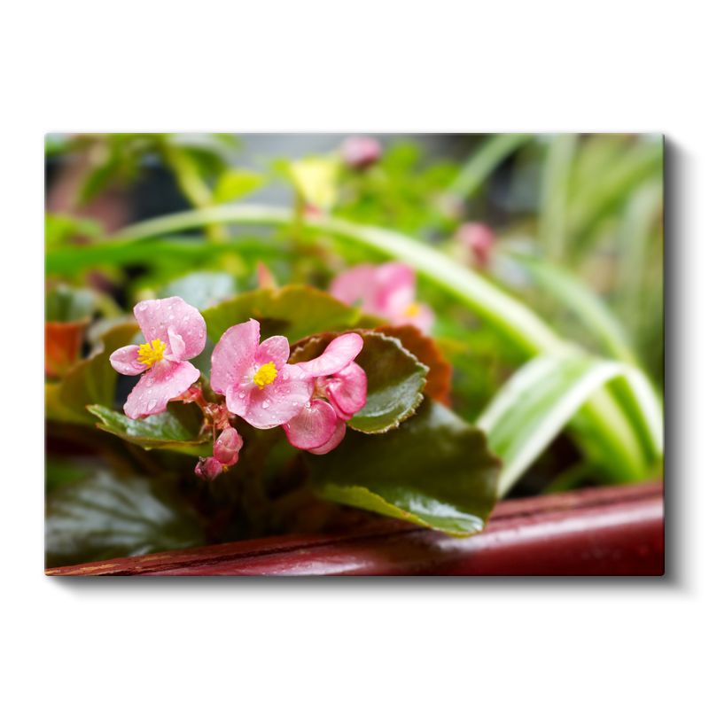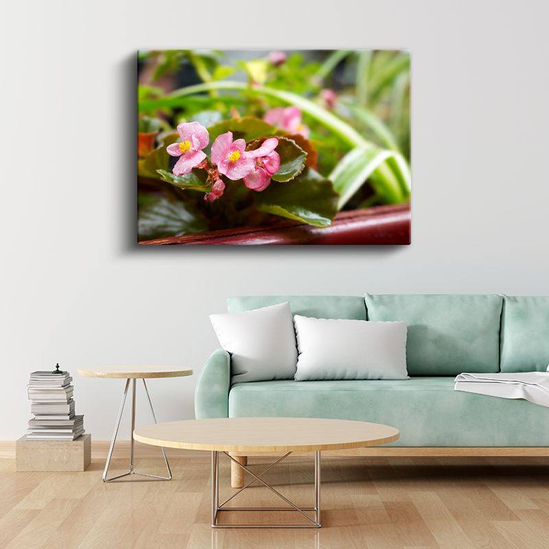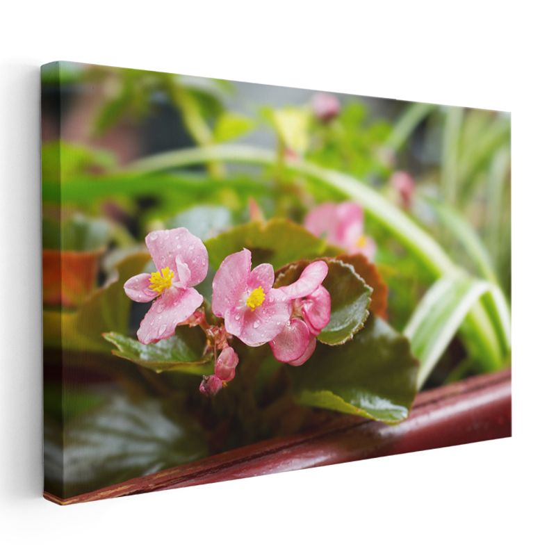 Pembe Begonyalar - Yeşil Yapraklar Arasında Minyatür Çiçekler Kanvas Tablo