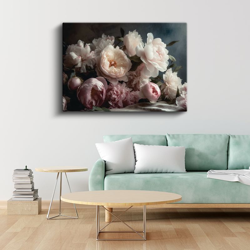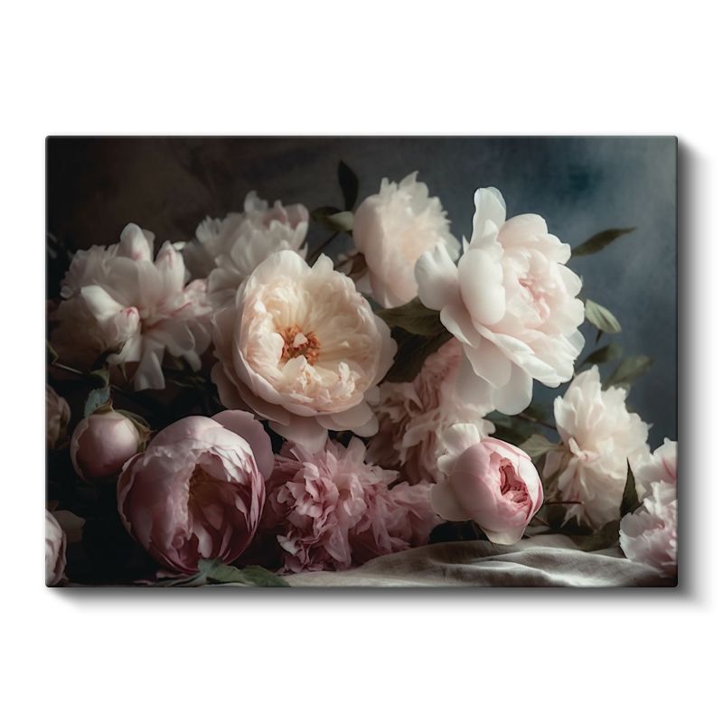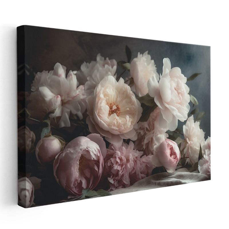 Pembe Beyaz Şakayıklar - Vintage Tarzı Romantik Buket Kanvas Tablo