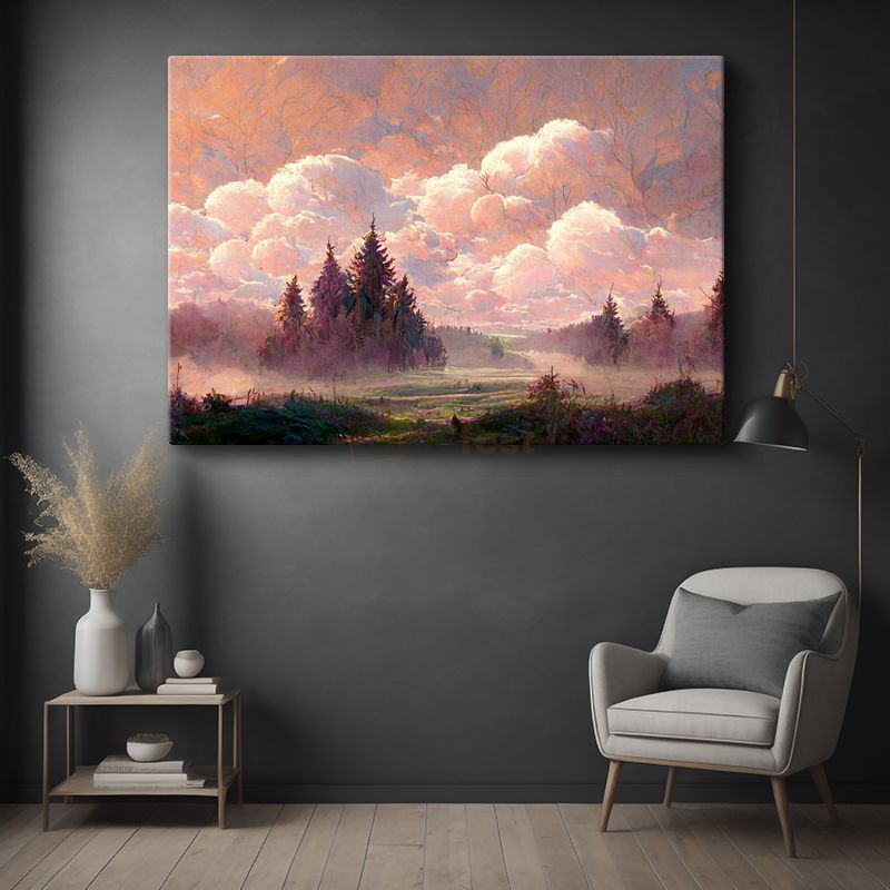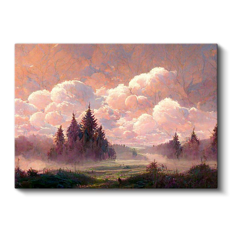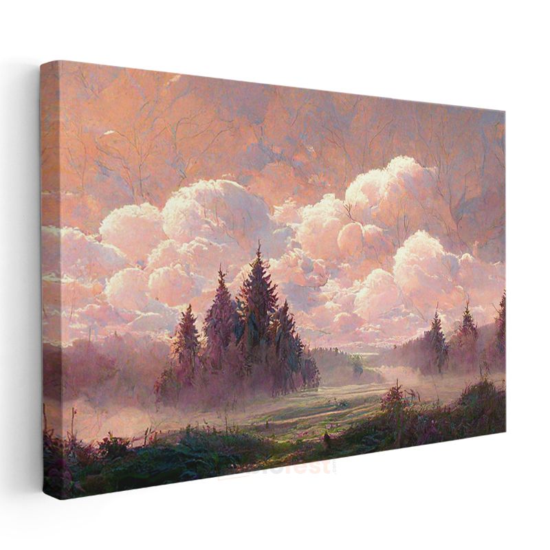 Pembe Bulutlar - Sisli Ormanda Gün Doğumu Kanvas Tablo