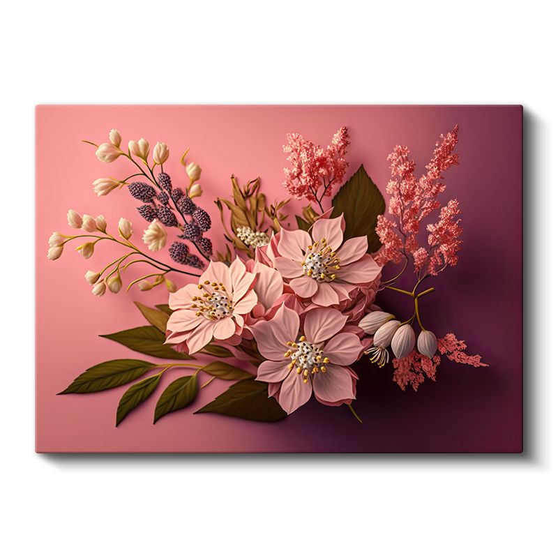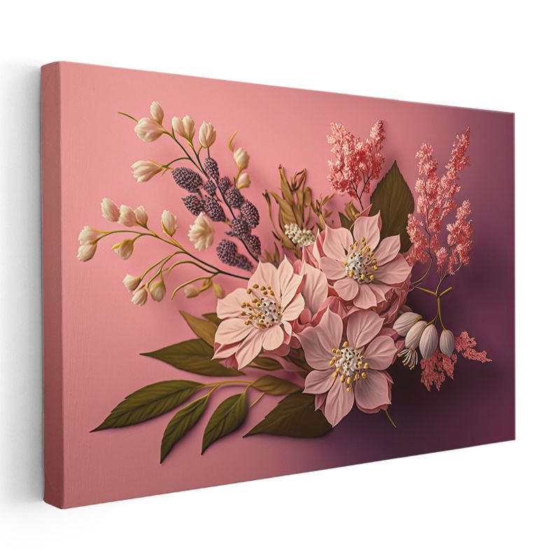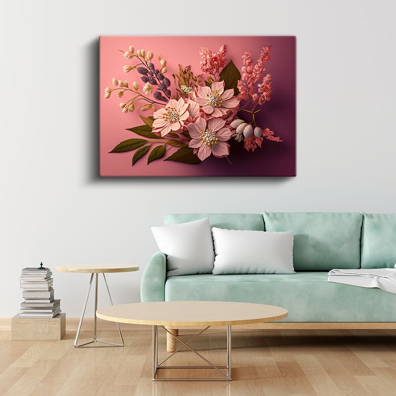 Pembe Çiçek Aranjmanı - Degrade Fonda Zarif Kompozisyon Kanvas Tablo