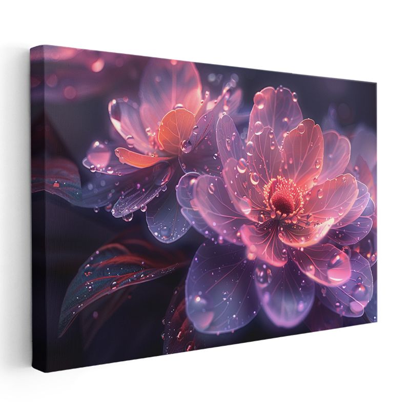 Pembe Çiçek - Dijital Sanat Su Damlacıklı Kanvas Tablo