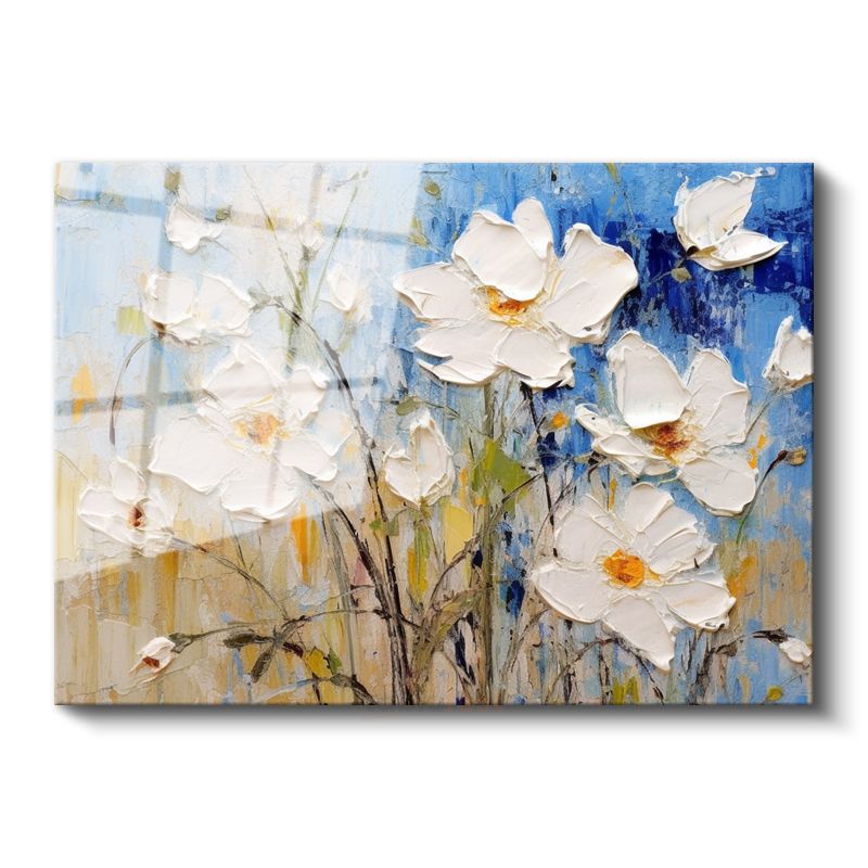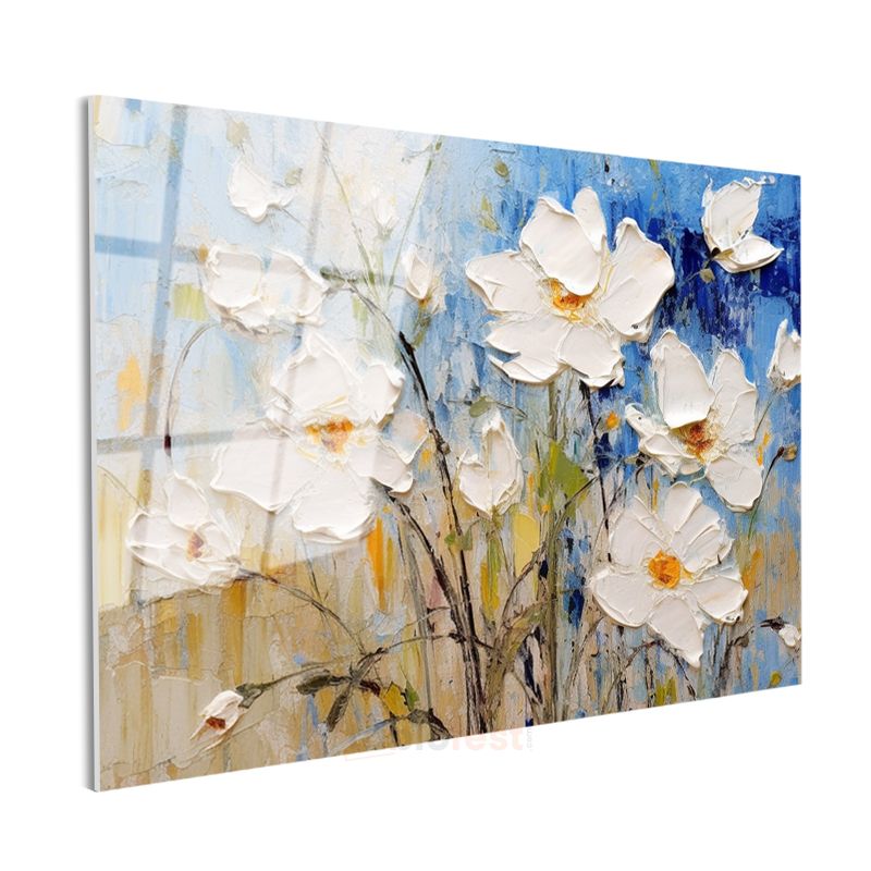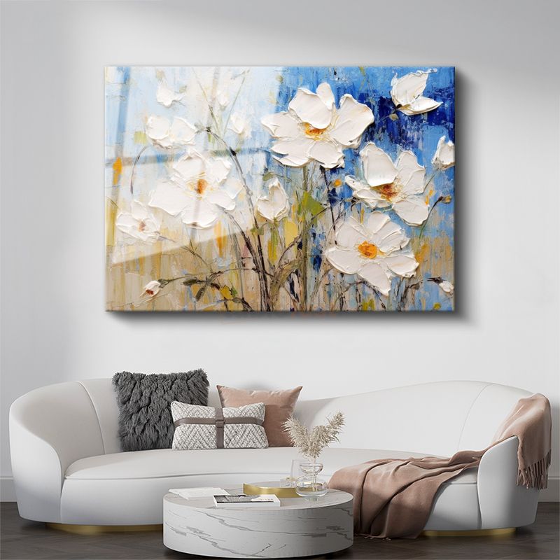 Pembe Çiçekler - Altın Detaylı D Çiçek Tasarımı Cam Tablo