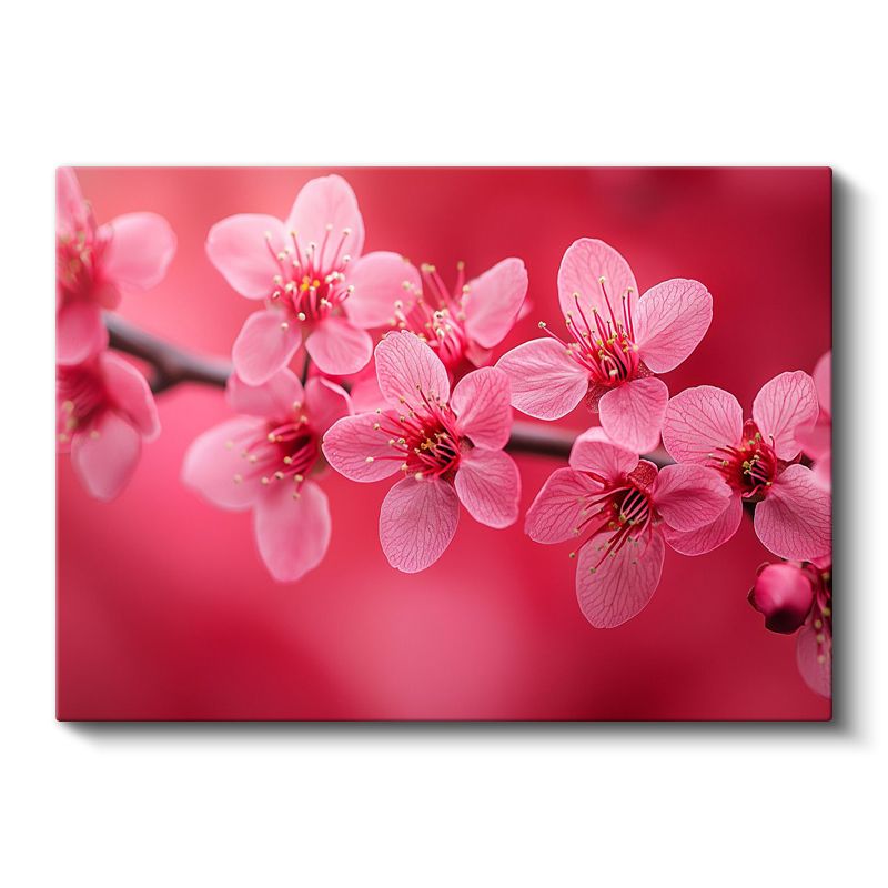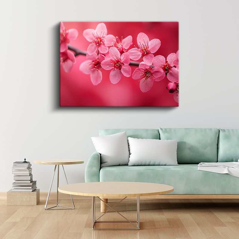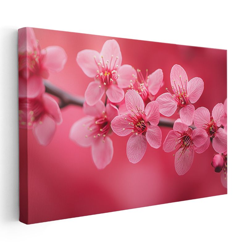 Pembe Çiçekler - Canlı Renkli Bahar Dalı Kanvas Tablo