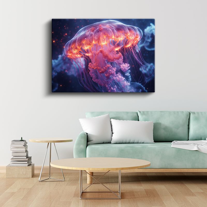 Pembe Denizanası - Derinliklerin Işıldayan Güzelliği Kanvas Tablo