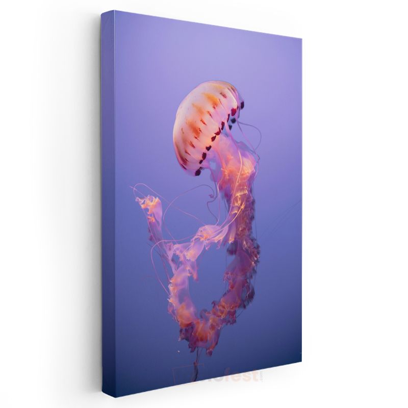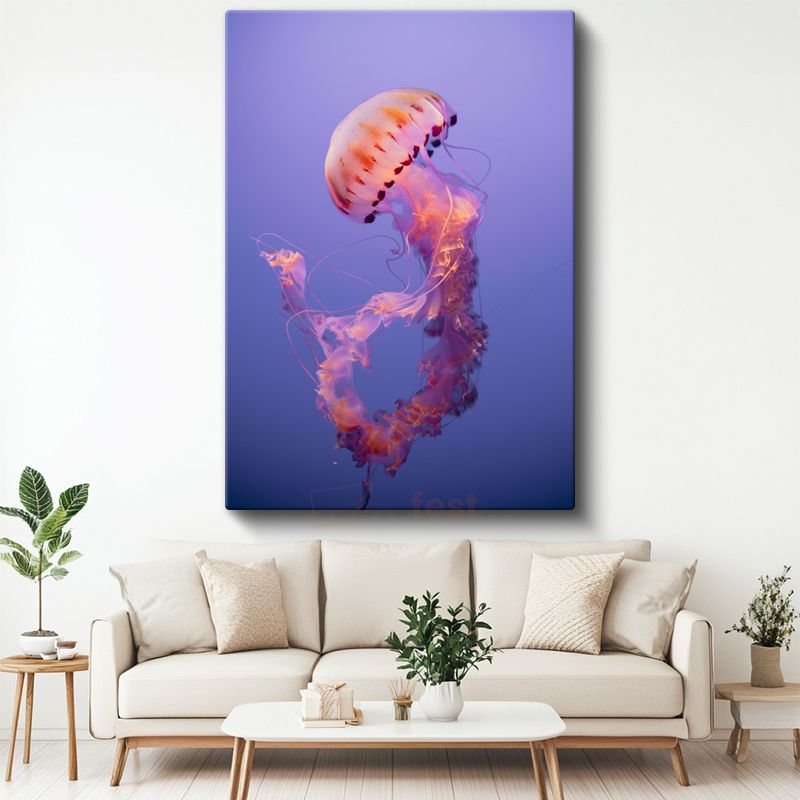 Pembe Denizanası - Mor Sularda Süzülen Narin Deniz Canlısı Kanvas Tablo