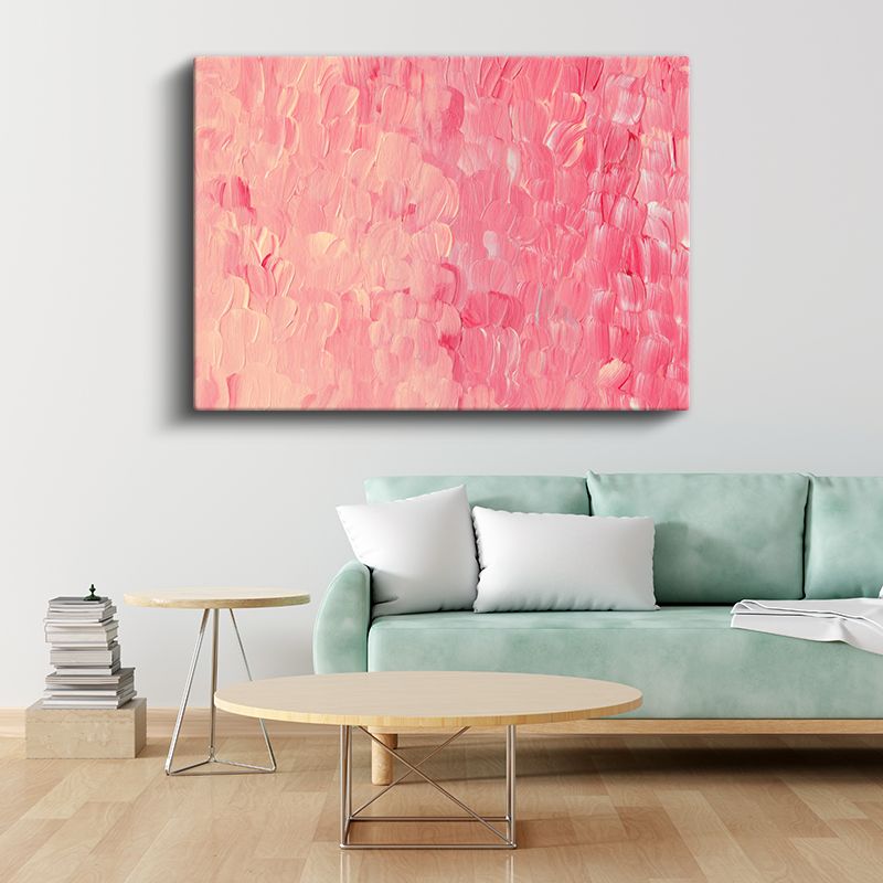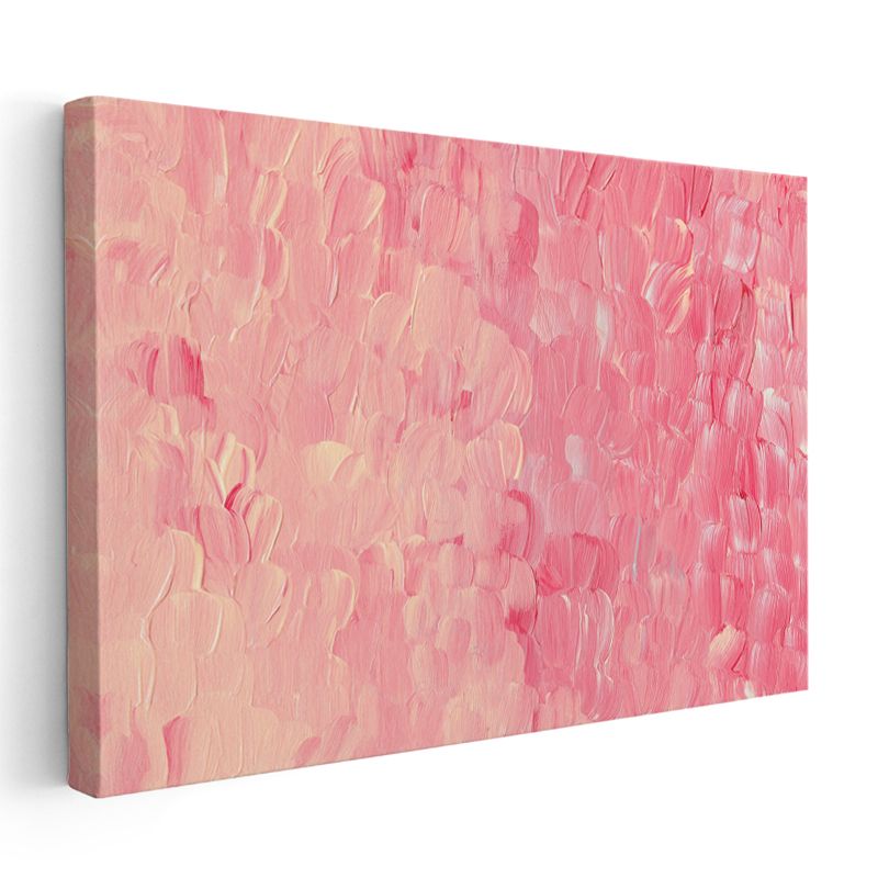 Pembe Doku - Fırça Darbeleriyle Oluşturulmuş Soyut Kanvas Tablo