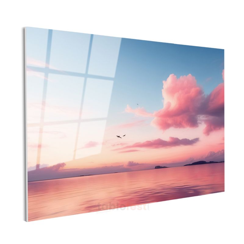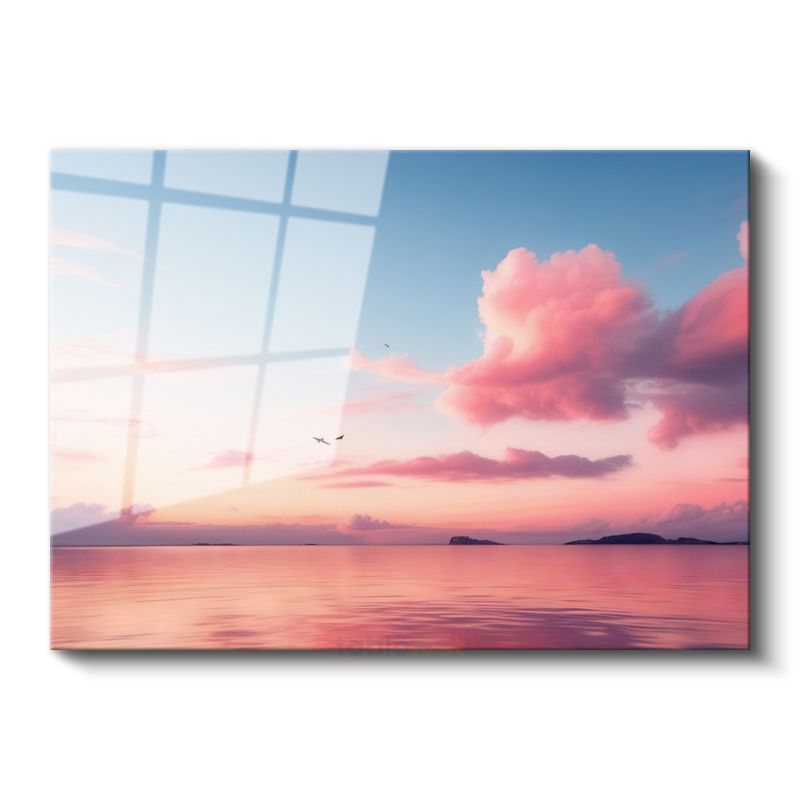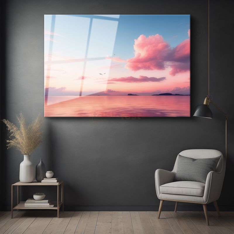 Pembe Gökyüzü - Huzur Veren Sakin Deniz Manzarası Cam Tablo
