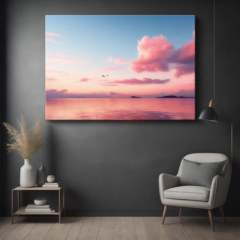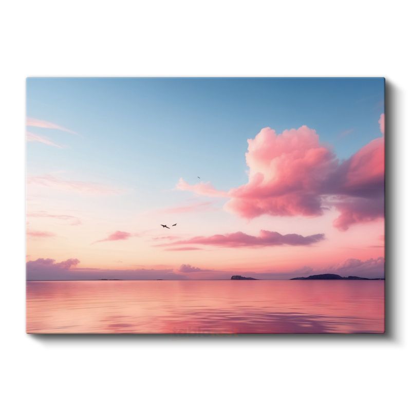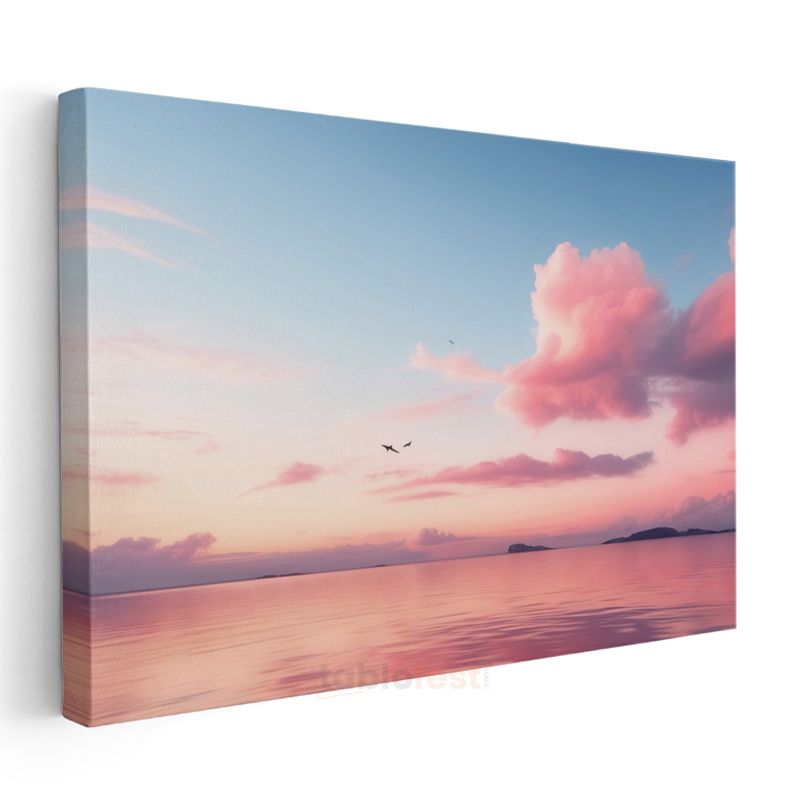 Pembe Gökyüzü - Huzur Veren Sakin Deniz Manzarası Kanvas Tablo