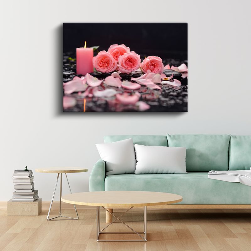 Pembe Güller - Mum Işığında Romantik Kompozisyon Kanvas Tablo
