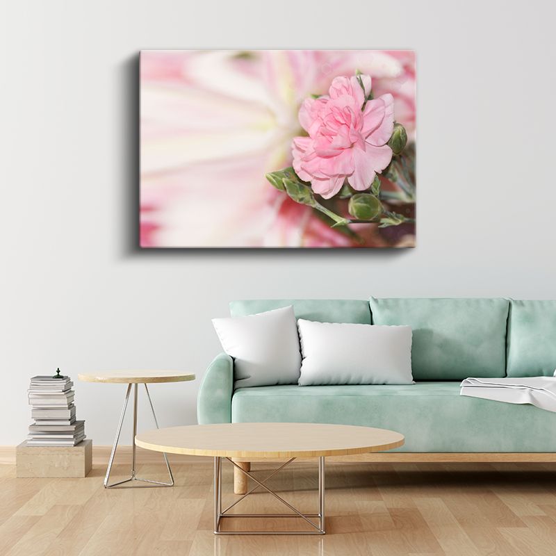 Pembe Karanfil - Yumuşak Tonlarda Çiçek Portresi Kanvas Tablo