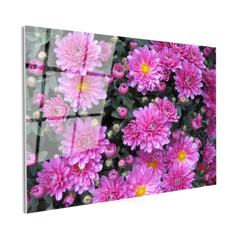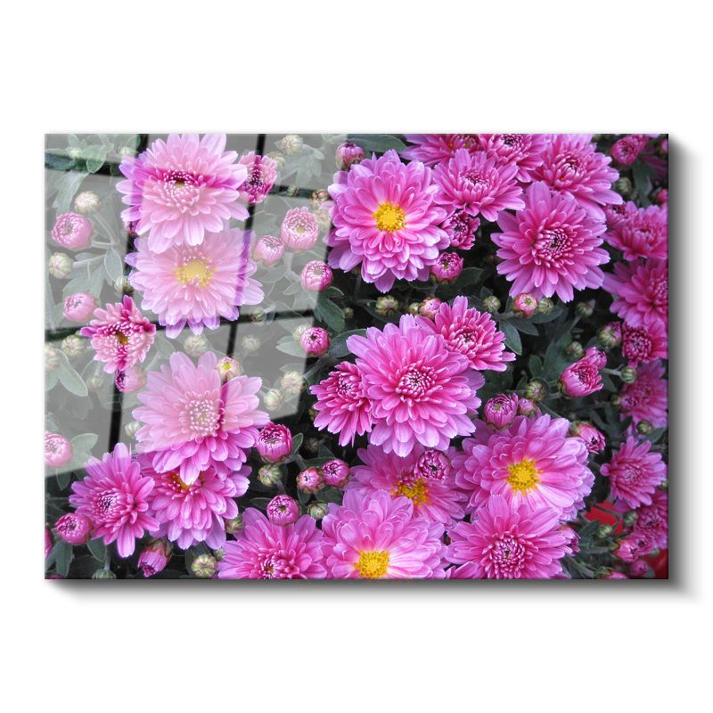 Pembe Kasımpatı - Çiçek Bahçesi Detayı Cam Tablo