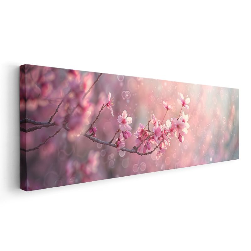 Pembe Kiraz Çiçekleri - Romantik Bahar Dalı Kanvas Tablo