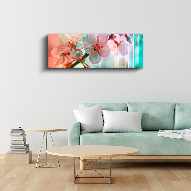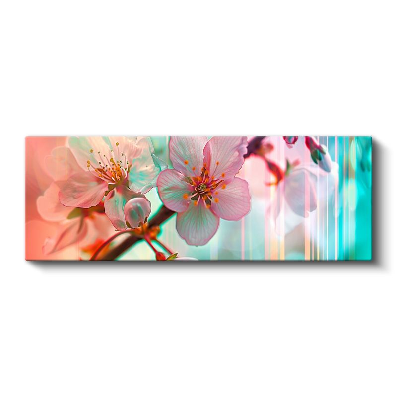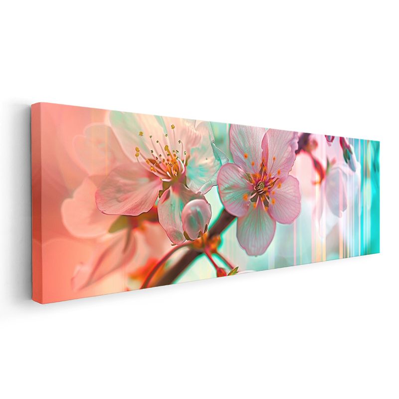 Pembe Kiraz Dalı - Işıltılı Bahar Manzarası Kanvas Tablo