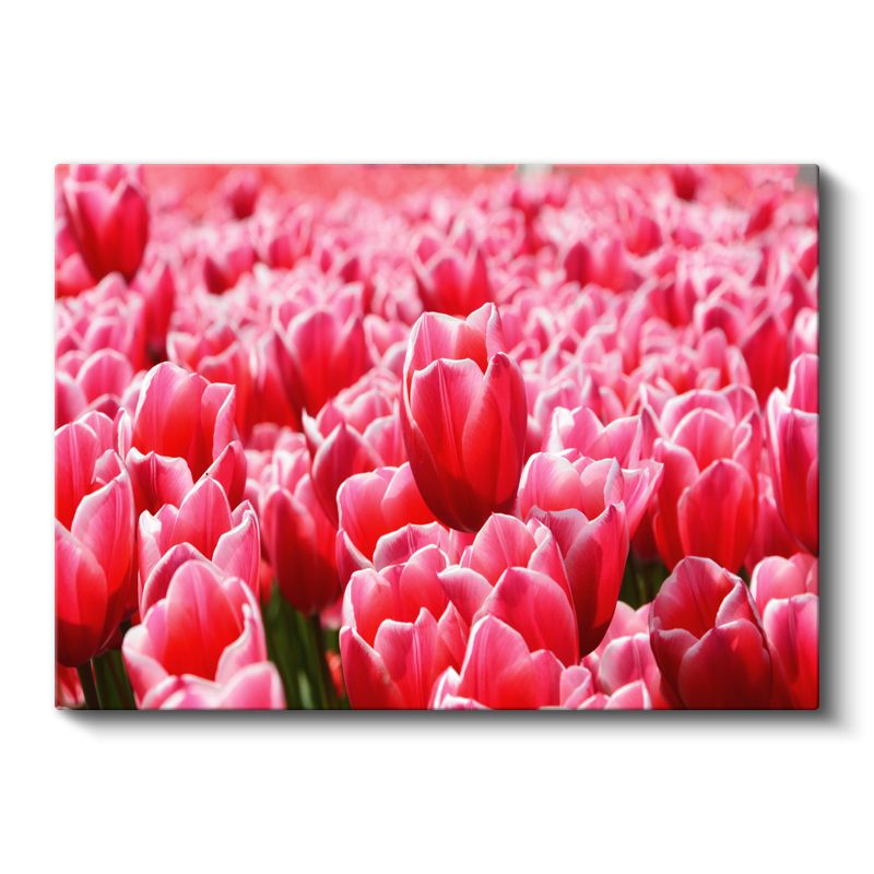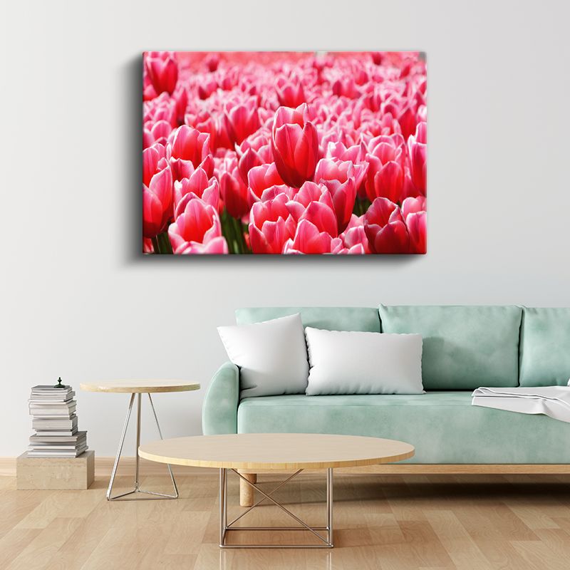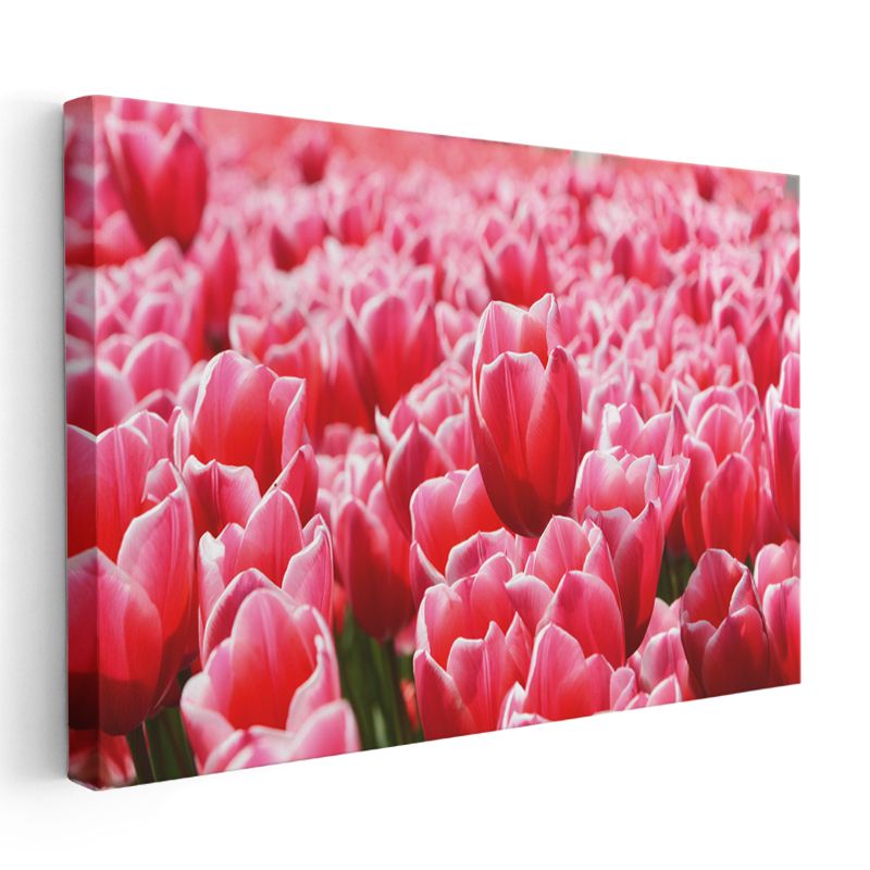 Pembe Laleler - Çiçek Tarlası Manzarası Kanvas Tablo