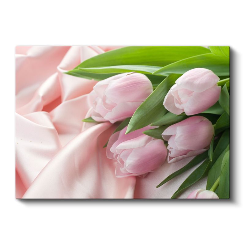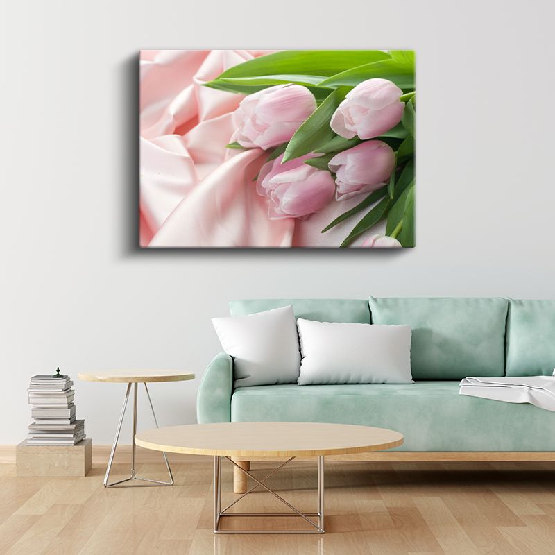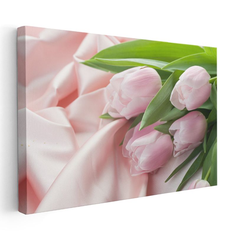 Pembe Laleler - İpek Kumaş Üzerinde Zarif Buket Kanvas Tablo