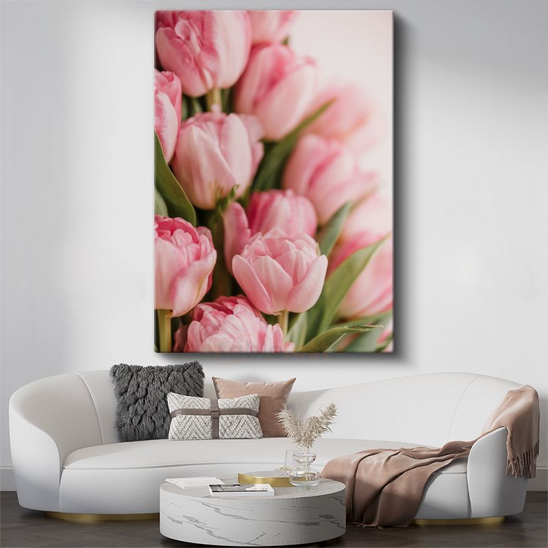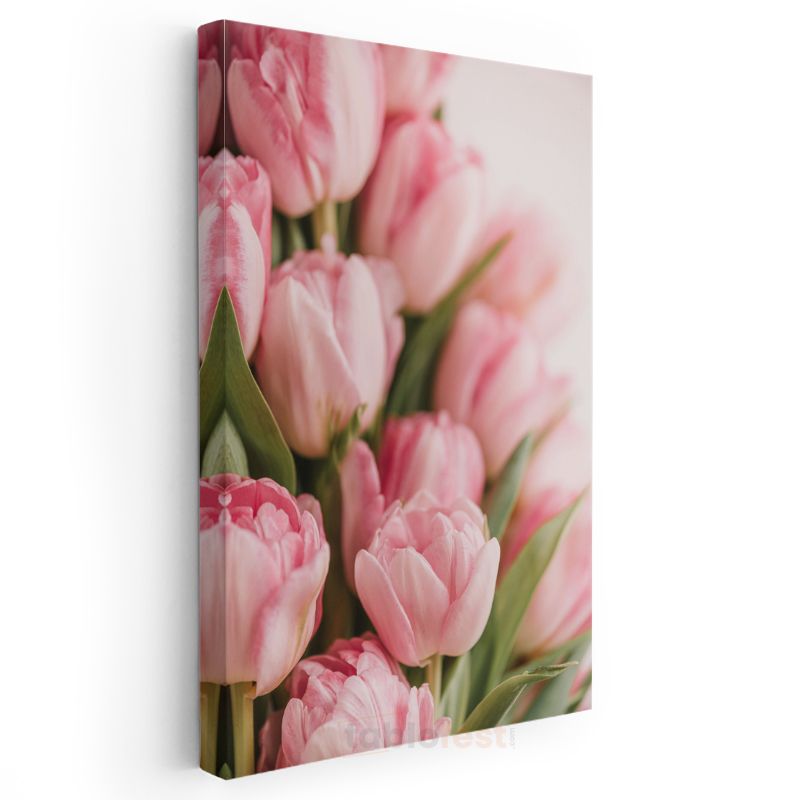 Pembe Laleler - Yumuşak Tonlarda Çiçek Buketi Kanvas Tablo