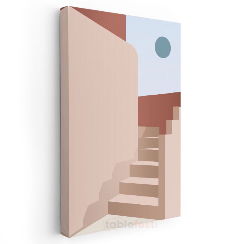 Pembe Merdivenler - Lacivert Duvar ve Geometrik Kontrast Kanvas Tablo