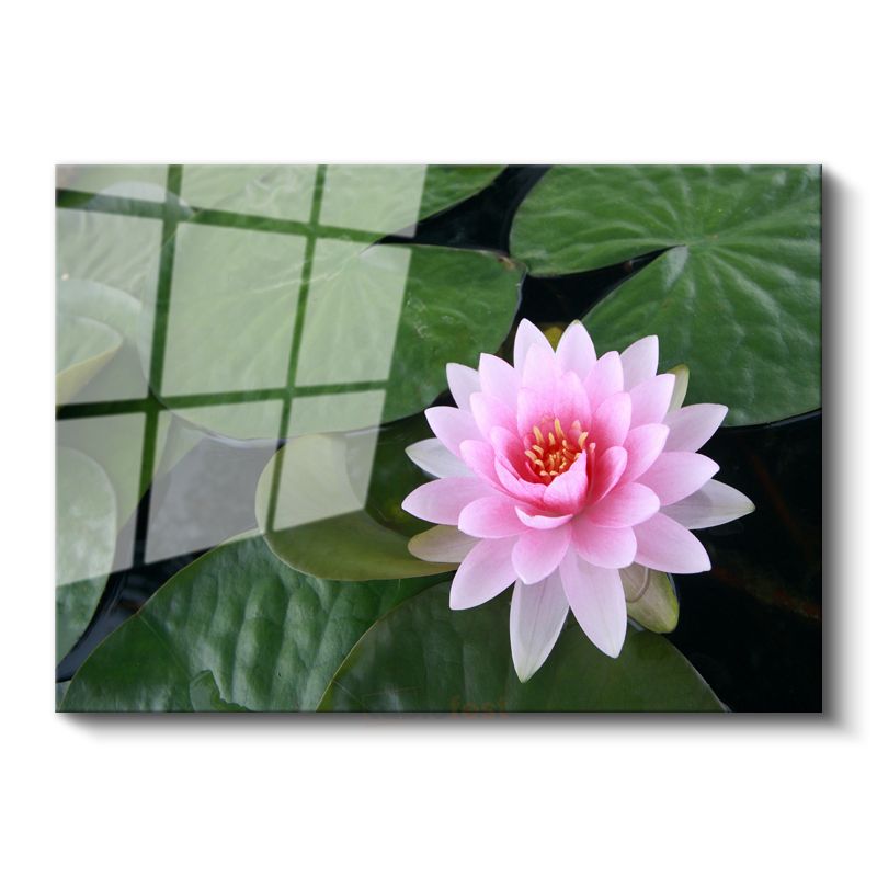 Pembe Nilüfer - Geniş Yapraklar Üzerinde Su Çiçeği Cam Tablo
