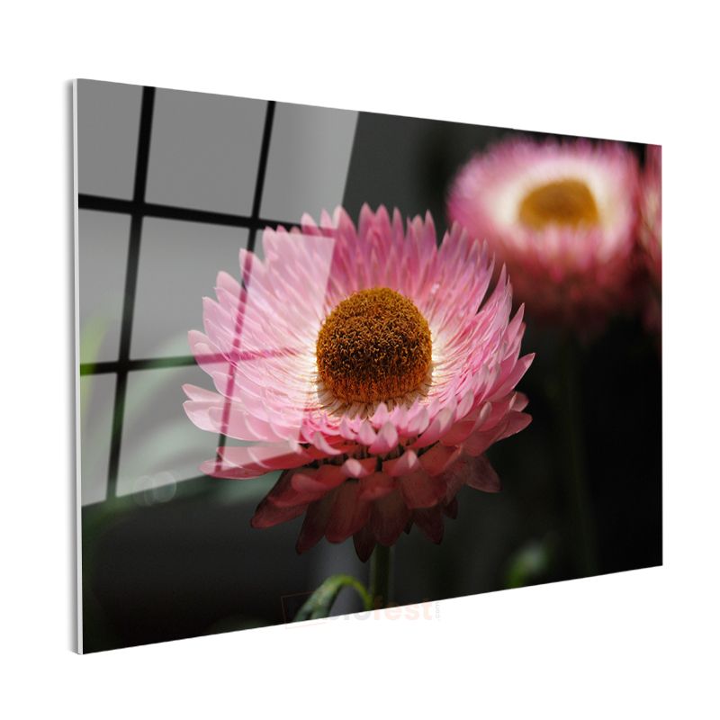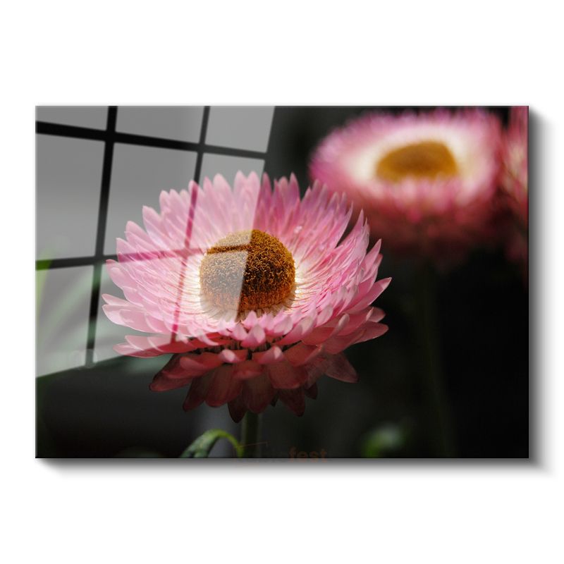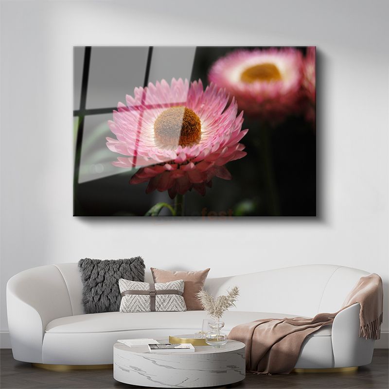 Pembe Ölmez Çiçek - Kahverengi Merkezli Dekoratif Cam Tablo