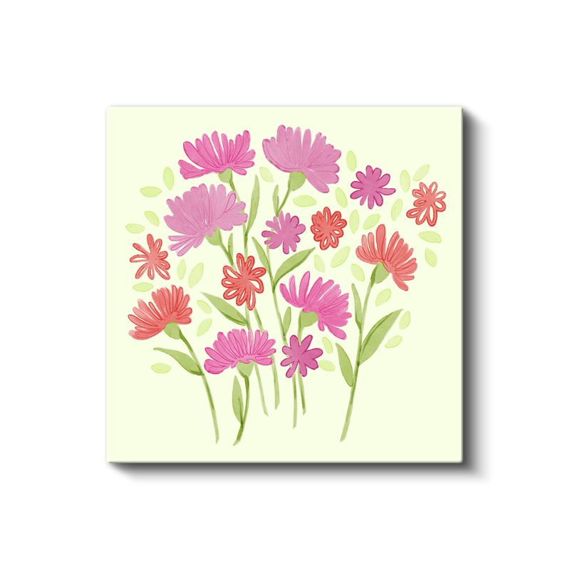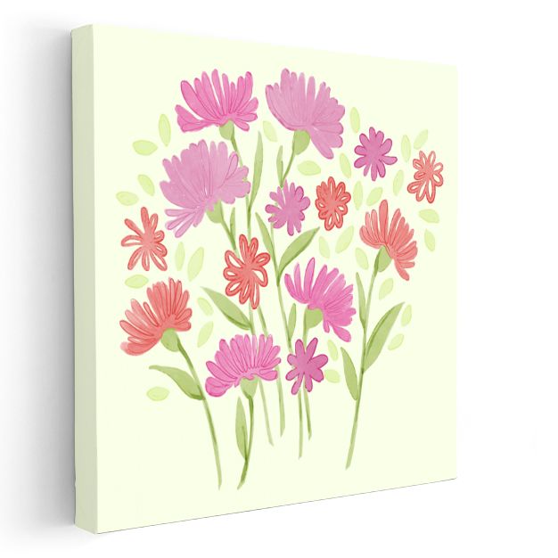 Pembe Papatyalar - Açık Yeşil Fonda Bahar Çiçekleri Kanvas Tablo