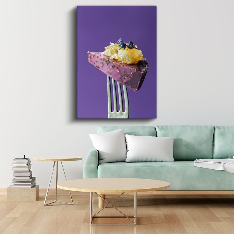 Pembe Pasta Dilimi - Meyve Garnitürlü Tatlı Kanvas Tablo