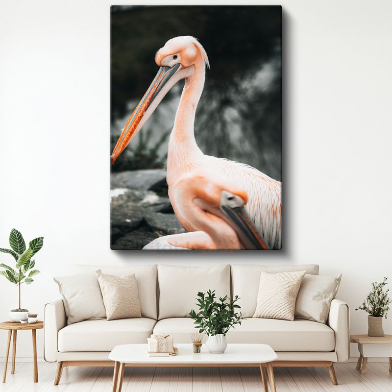 Pembe Pelikanlar - Zarif Duruşlu Uzun Gagalı Kuşlar Kanvas Tablo