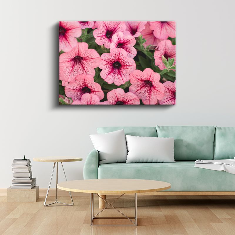 Pembe Petunya Çiçekleri - Damar Desenli Narin Çiçek Koleksiyonu Kanvas Tablo