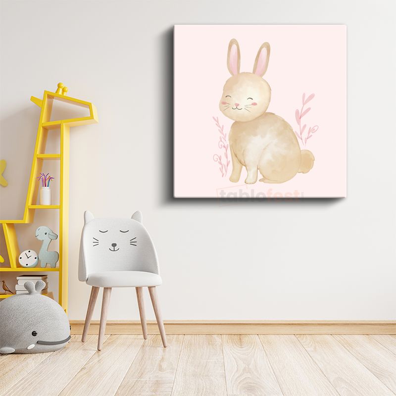 Pembe Tavşan - Sevimli Kulaklar Kanvas Tablo