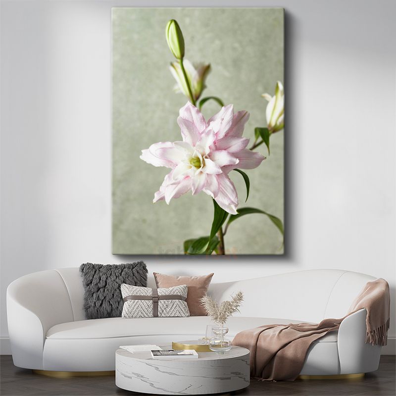 Pembe Zambak - Minimal Açık Zeminde Çiçek Kanvas Tablo