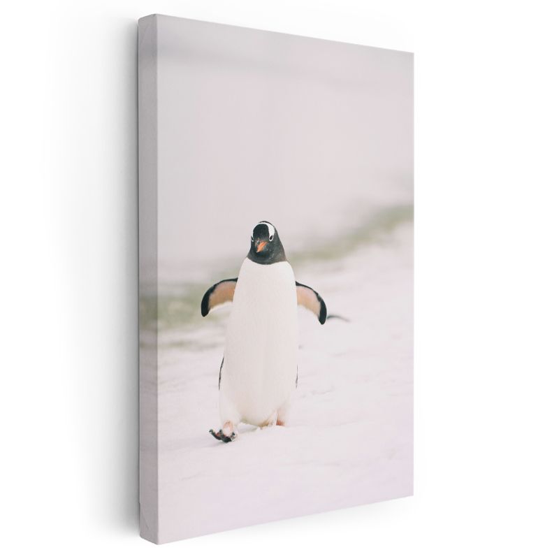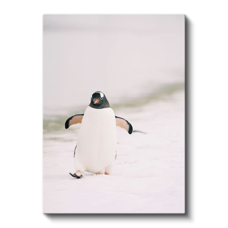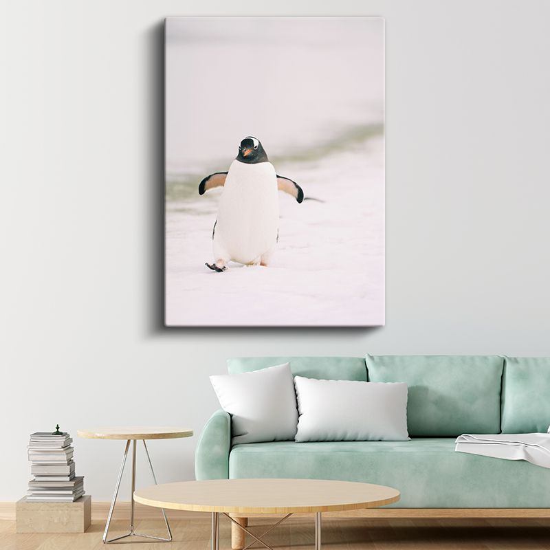 Penguen - Beyaz Zeminde Sevimli Yürüyüş Kanvas Tablo