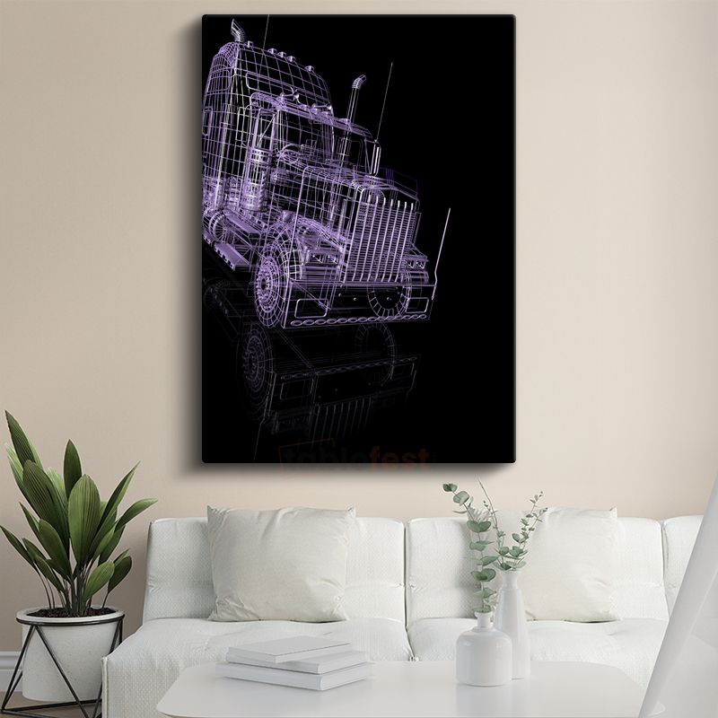 Peterbilt Çizim - 3D Tel Kafes Kamyon Tasarımı Kanvas Tablo
