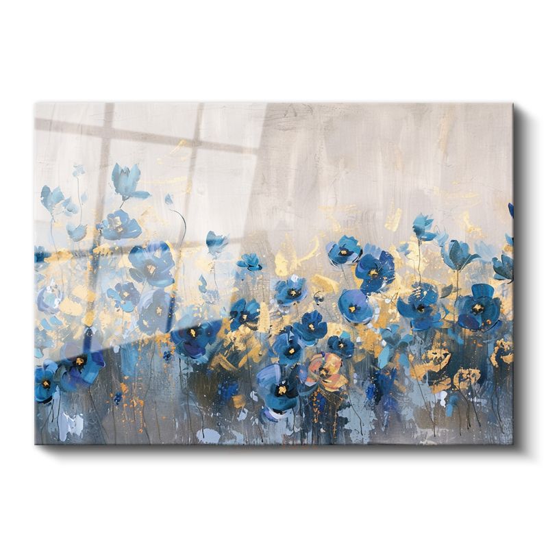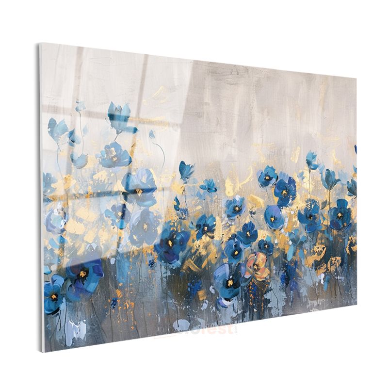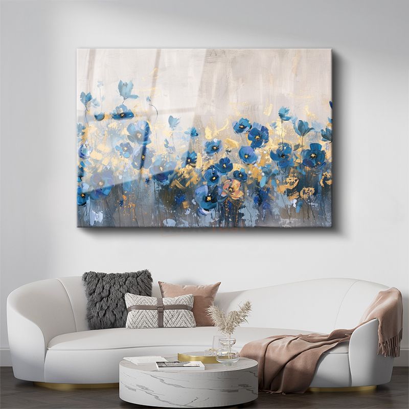 Petunya Çiçekleri - Mavi Yeşil Fonda Zarif Tasarım Cam Tablo