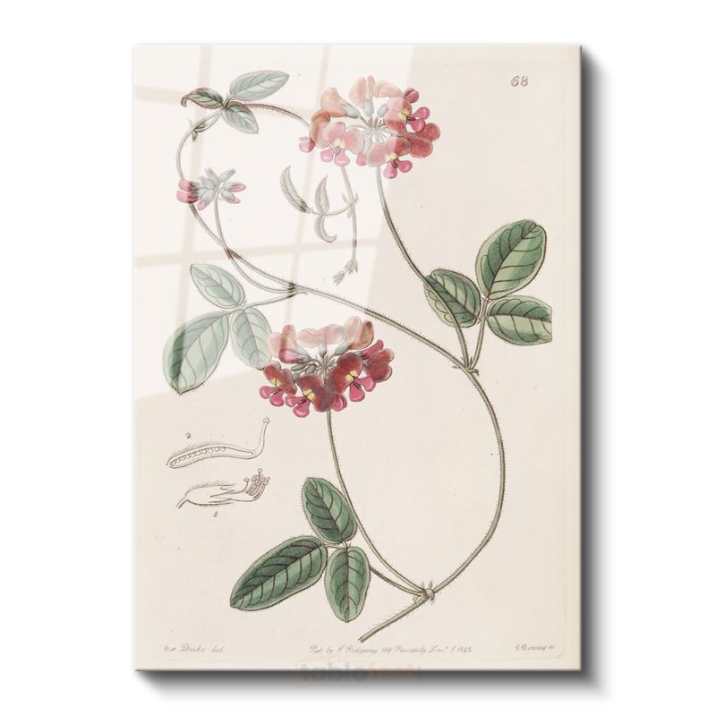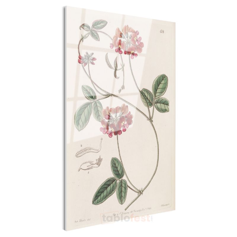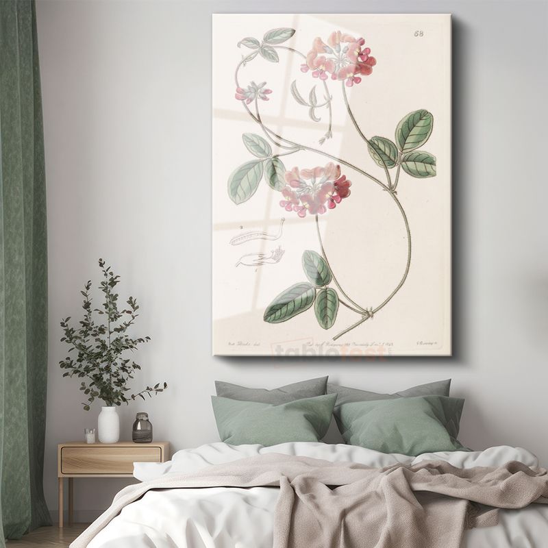 Pierre-Joseph Redouté - Kırmızı Çiçekli Bitki Botanik İllüstrasyonu Cam Tablo