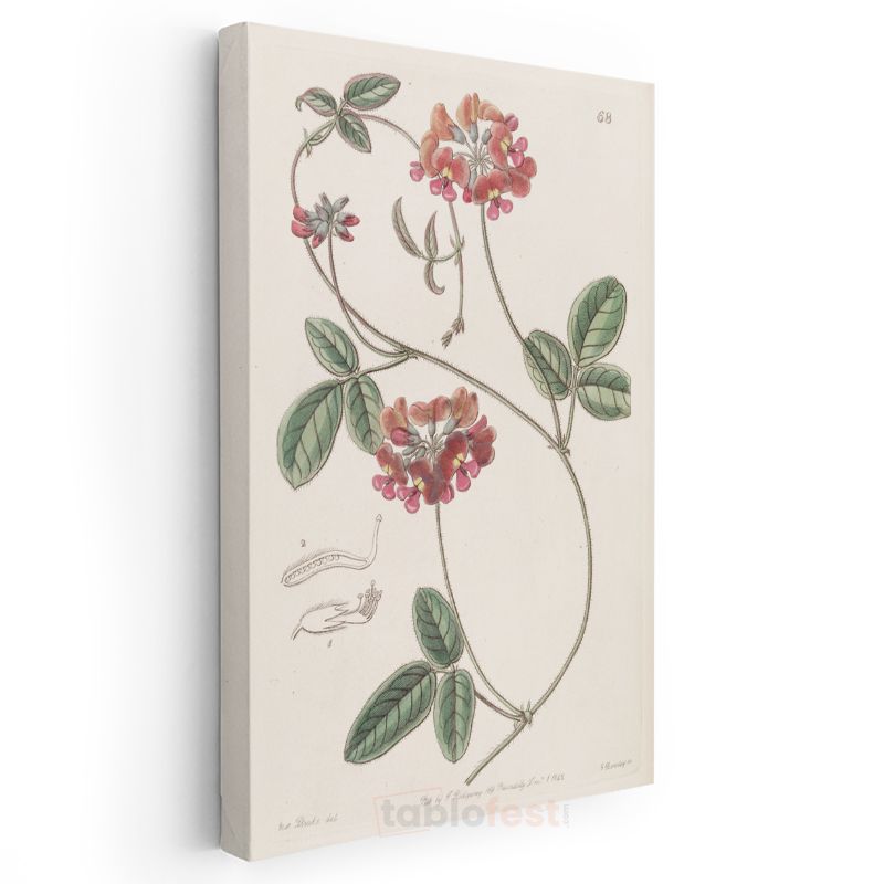 Pierre-Joseph Redouté - Kırmızı Çiçekli Bitki Botanik İllüstrasyonu Kanvas Tablo