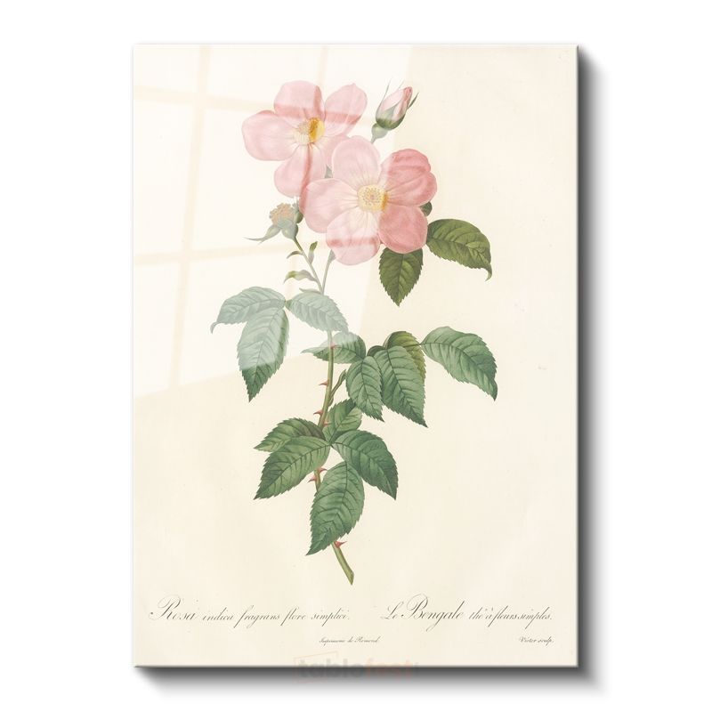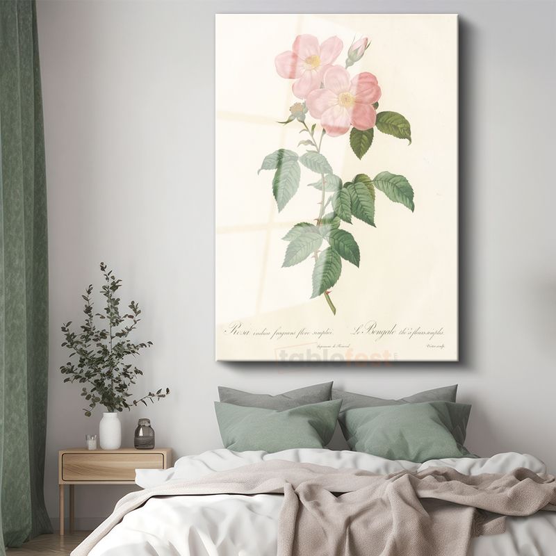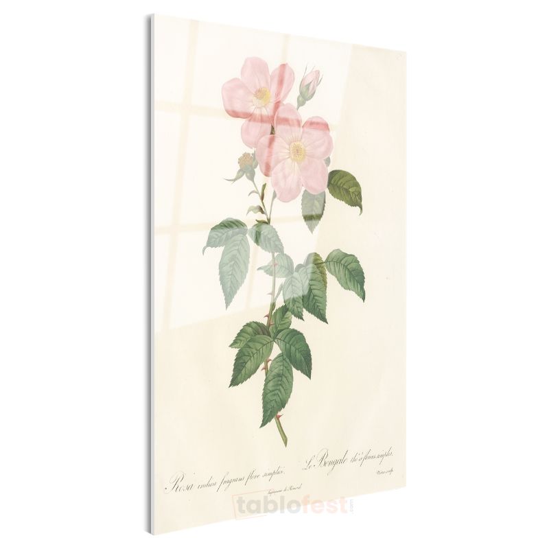 Pierre-Joseph Redouté - Pembe Yaban Gülü Cam Tablo