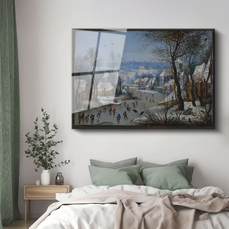 Pieter Bruegel - Kış Manzarası Cam Tablo