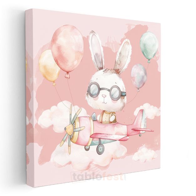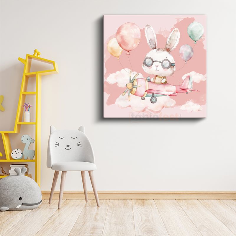 Pilot Tavşan - Pembe Gökyüzünde Uçuş Macerası Kanvas Tablo