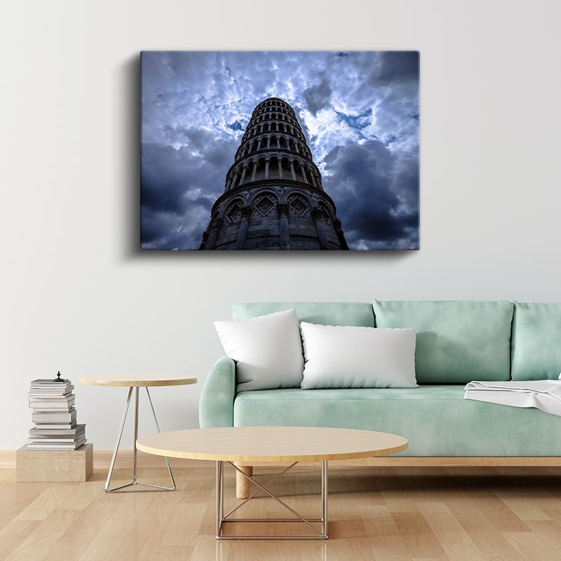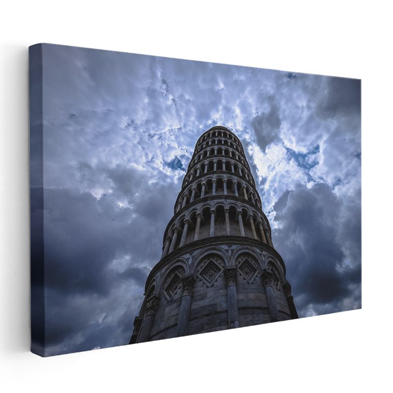 Pisa Kulesi - Dramatik Gökyüzü Altında Kanvas Tablo