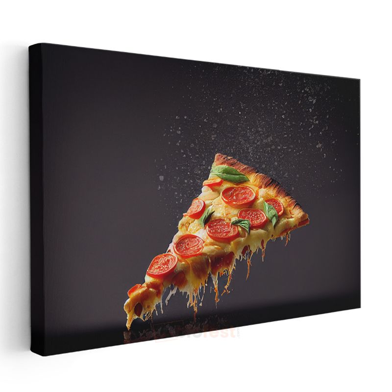 Pizza Dilimi - Eriyen Peynir ve Domates Harmonisi Kanvas Tablo