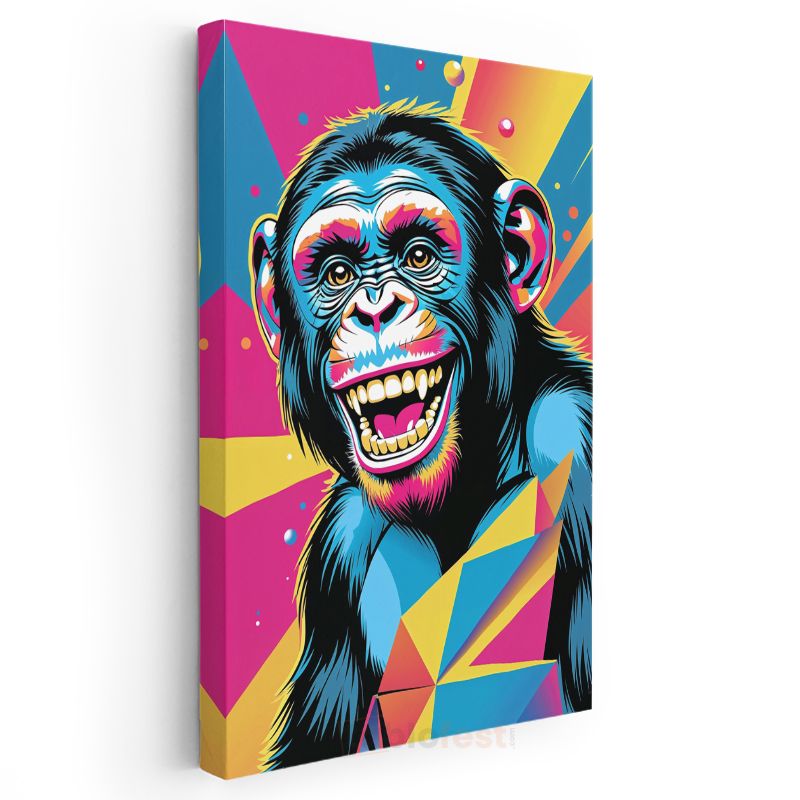 Pop Art Şempanze - Renkli Geometrik Desenli Gülümseme Kanas Tablo