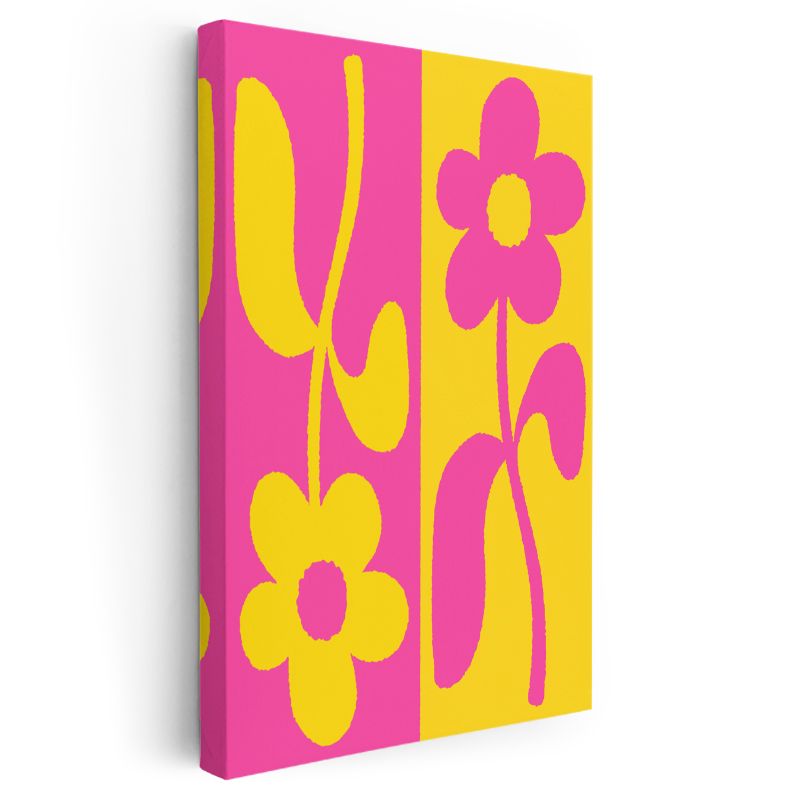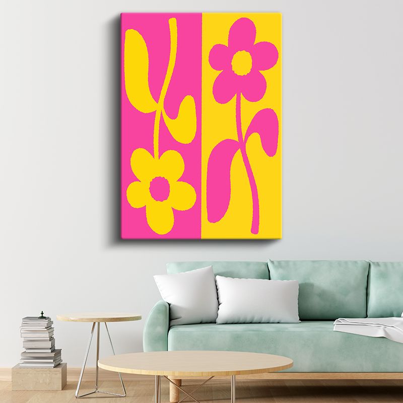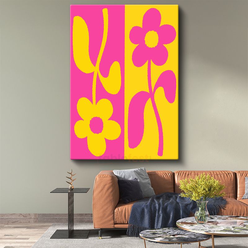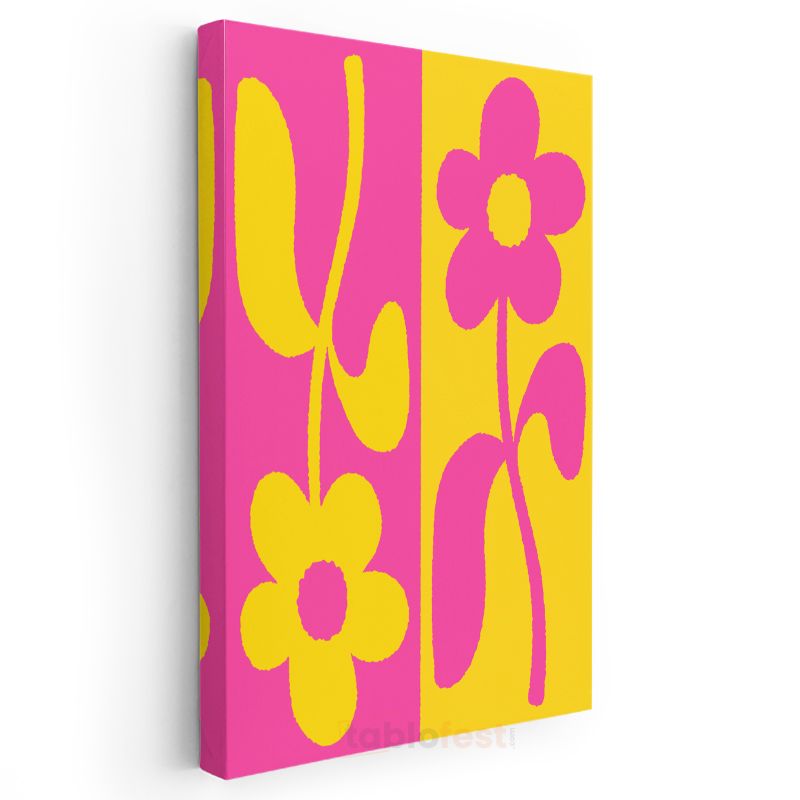 Pop Çiçekler - Neşeli Kontrast Renkli Botanik Kanvas Tablo