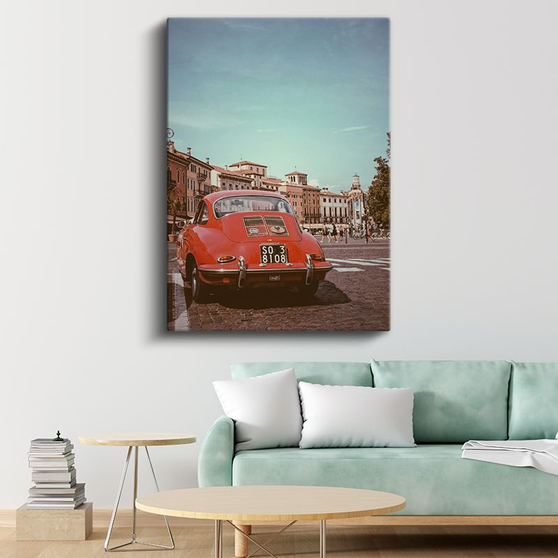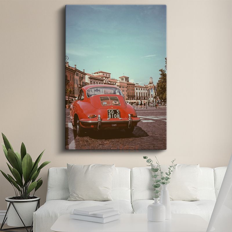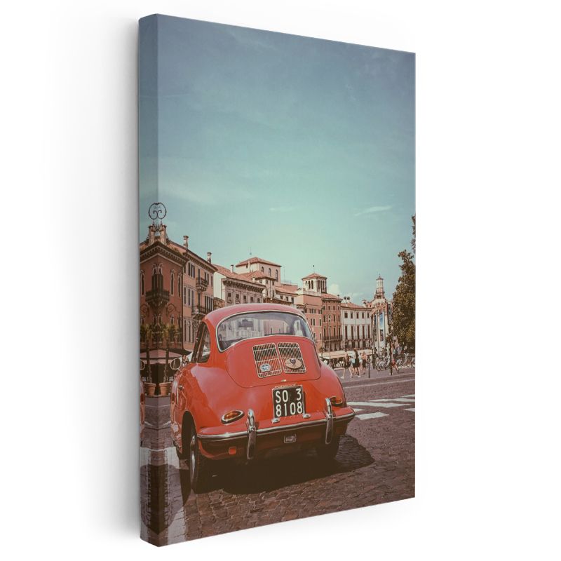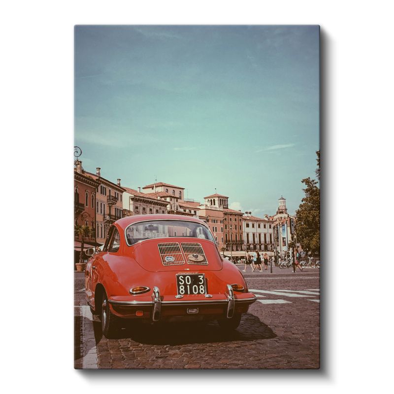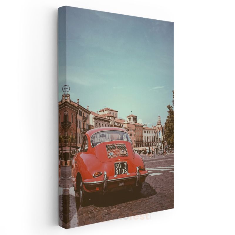 Porsche 356 - İtalyan Meydanında Kırmızı Klasik Spor Otomobil Kanvas Tablo