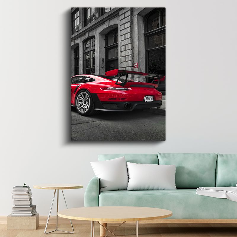 Porsche 911 GT2 RS - Kırmızı Yarış Otomobili Arka Görünüm Kanvas Tablo