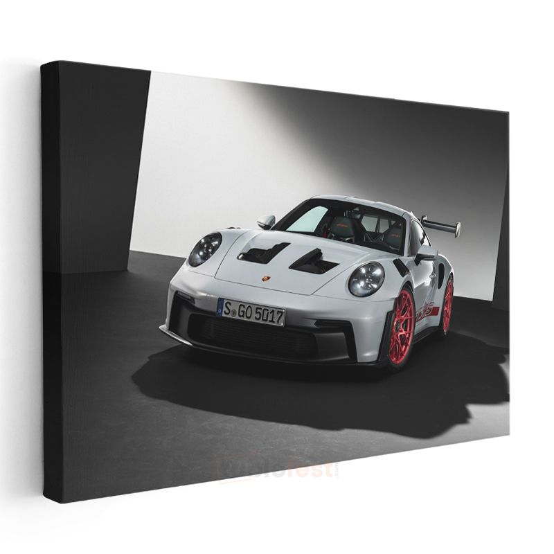 Porsche 911 GT3 RS - Beyaz Yarış Otomobili Kırmızı Jantlar Kanvas Tablo